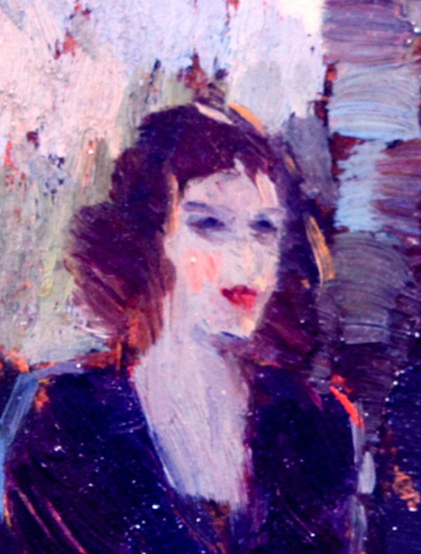 Schiele e Klimt, Ritratto di donna sul Danubio, immersa in una natura malinconica e desolata in stile fauves, la faccia da maschera inquietante … e le estremità degli alberi, shock immagine di sofferenza e morte.