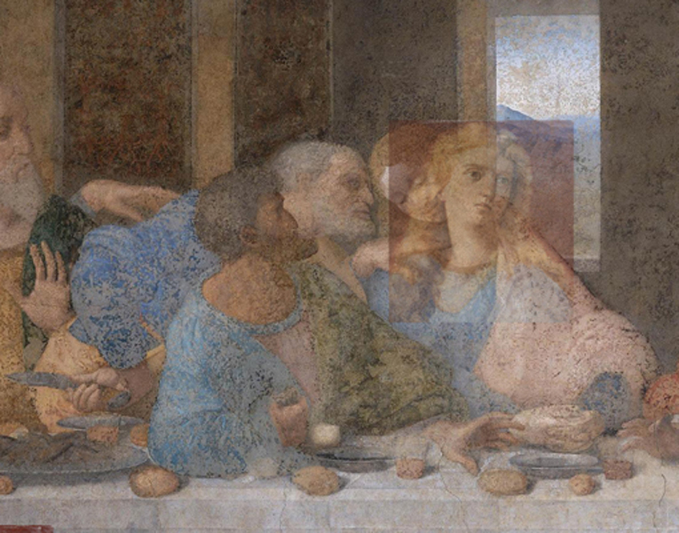 Un dettaglio particolare del Cenacolo Vinciano è la mano di Pietro che impugna un coltello. La mano è uguale a quella di un cavaliere nella Battaglia di Anghiari, un’opera di Leonardo nota attraverso una copia di Rubens conservata al Louvre. Leonardo riutilizzava pose e gesti in più opere, cercando la massima espressività nei movimenti.